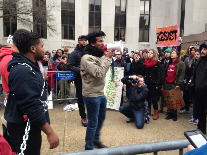 Under the banner #DisruptJ20 (for January 20, the date of the inauguration), activists dedicated to different issues took their message to specific viewing entrances, many attempting to slow or stop supporters from getting inside.